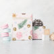 Aquarellfarbenes Weihnachtspapier ft Aquarellbilder von Lollipops, Aquarellstern Weihnachtsschmuck, Schneeflocken in Blau und Rosa, Kiefernzapfen, Ziergegenstände, Steinglocken und Kiefernkegel. Eine wahrhaft feminine und robuste Geschenkpackung für das perfekte pinkfarbene Weihnachten- oder Rosa Winterwunderland.