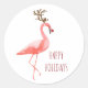 "Happy Holiday" oder Ihr Wunschaufkleber mit einem lustigen Flamingo-Dressing Rudolph roten Nasenrentiervorlage.