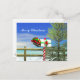Eine Postkarte mit meinem Kunstwerk eines ländlichen Postfachs gefüllt mit Weihnachtsgeschenken. Im Text steht "Frohe Weihnachten".