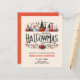 Trending Hallowmas Einladungen, Mashup von Halloween und Weihnachten mit einem Halloween-dekorierten Weihnachtsbaum und spukhafte Elemente.
