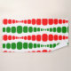 Dieses Handtuchhandtuch-Set hat ein modernes Design von roten und grünen abgerundeten Rechtecken in steigender und abnehmender Größe, die vertikal auf einem weißen Feld laufen.