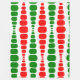Diese große Fleecedecke hat ein modernes Design von roten und grünen abgerundeten Rechtecken in steigender und abnehmender Größe, die vertikal auf einem Feld von Weiß läuft.