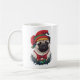 Die Tasse "Weihnachten Mops" bietet eine fröhliche Kulisse eines niedlichen Mops, der eine Weihnachtsmannmütze inmitten einer schneebedeckten Landschaft verbindet. Lebhafte Ferienfarben und ein herzlicher Ausdruck machen das Schlumpfen zu einem Genuss.