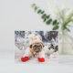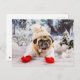 Weihnachts-Mops mit Handschuhen und Hut Postkarte
