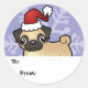 Weihnachts-Mops Runder Aufkleber