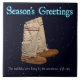 Ein Paar Mukluks mit Textlesen, "Die Grüße der Jahreszeit" und "Die Mukluks wurden mit Sorgfalt am Holzofen gehängt;" überlagert auf einem Hintergrund im Sternenfeld. Ein weit nördlicher Blick auf das berühmte Gedicht "A Visit from St. Nikolaus". Das Gedicht, auch bekannt als "The Night Before Christmas", wurde 1823 anonym veröffentlicht und später Clement Clarke Moore zugeschrieben, der die Autorität anerkannte.