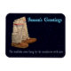 Ein Paar Mukluks mit Textlesen, "Die Grüße der Jahreszeit" und "Die Mukluks wurden mit Sorgfalt am Holzofen gehängt;" überlagert auf einem Hintergrund im Sternenfeld. Ein weit nördlicher Blick auf das berühmte Gedicht "A Visit from St. Nikolaus". Das Gedicht, auch bekannt als "The Night Before Christmas", wurde 1823 anonym veröffentlicht und später Clement Clarke Moore zugeschrieben, der die Autorität anerkannte.