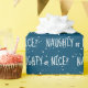 Weißer "NAUGHTY or NICE" Text mit Schneeflocken-Design auf blauem Hintergrund. Text kann bearbeitet werden. Die Hintergrundfarbe kann geändert werden.
