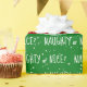 Weißer "NAUGHTY oder NICE" Text mit Schneeflocken-Design auf grünem und rotem Hintergrund. Text kann bearbeitet werden.