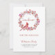 Moderne neue Zuhause für die Weihnachtsankündigungskarte mit einem niedlichen heiligen Kranz mit einem Kardinal-Vogel und einem trendigen, eleganten, dunkelroten Bordeaux-Typografie-Skript.+++++++++++ Einfach mit Ihrem Text, Ihrer neuen Adresse und Unterschrift personalisieren!