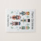 Dieses Weihnachtspuzzle enthält ein klassisches Spielzeugsoldat Nutcracker Thema. Fünf verschiedene Vintage Nussknacker werden in Aquarellmalerei gedruckt und mit Winterzweigen und Schneeflocken versehen. Auf der Oberseite ist ein "fröhlicher Weihnachtsgrüßen" gedruckt, auf dem unten ein Beispiel für Familiennamen gedruckt ist. Sie können das Rätsel so gestalten, dass Sie Ihren eigenen individuelle Name oder Text einbinden.