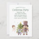 Diese Weihnachts-Party Einladung ist ein niedliches Thema für Muskeln. Ein illustriertes Bild zeigt einen Weihnachtsbaum, einen Muskelkater, einen Musensoldaten und eine kleine Zucker-Pflaumenfabrik.