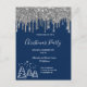 Weihnachts Party Blau Glitzer Silber Einladung Postkarte