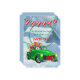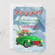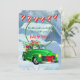 Eine helle und kirchliche Weihnachtsfeier mit einem Vintagen LKW, der mit dem Weihnachtsbaum der Familie und verschiedenen Feriendekorationen beladen wurde, um es zu beenden