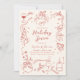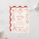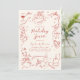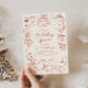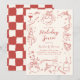 Rote, skurrile handgezeichnete Einladung mit klassischen Weihnachtsartikeln, um Ihre Party zu begeistern.