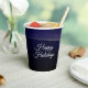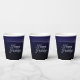 Weihnachts Party farbenfrohe Baumnavy Blue Rustic Paper Cups. Einzigartiges, schönes, stilvolles Design. Leicht personalisiert zu sein. Schriftart Stil, Größe und Farben können geändert werden. Matching-Elemente sind verfügbar.