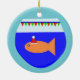 Dieser Ornament besticht durch einen lustigen orangefarbenen Weihnachtsgoldfisch, der eine festliche Weihnachtsmannmütze trägt. Der Goldfisch schwimmt im blauen Wasser seiner Goldfischschüssel. Der Fisch hat oben auf der Schüssel mit roten und grünen Fahnen geschmückt, die die Nachricht "Merry Fishmas" ausdrücken. Dieser lustige saisonale Fisch ist bereit für ein großes Weihnachtsfest Party.