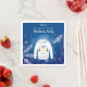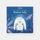 Eine Serviette für eine lustige Urlaubssaison und Weihnachten Party, Abendessen. Ein blauer Hintergrund mit großen weißen Schneeflocken, Kristallen. Mit einem hässlich weißen Weihnachtspulli dekoriert. Personalisieren und fügen Sie Ihren Familiennamen, das Jahr und den Typ des Party hinzu. Der Text: Das Weihnachtsgebäck ist in Weiß mit einem modernen, handgeschriebenen Stil geschrieben. Weiße Buchstaben.