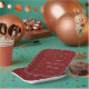 Papierplatte mit einem rot-cremegestreiften Hintergrund mit einem eleganten Drehbuch und einem serifenlosen Schriftart, in dem Ihre personalisierten Informationen geschrieben sind. Karo in unserem Shop für weitere Artikel aus dieser Kollektion.