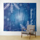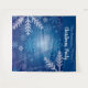 Ein winterlicher Wandteppich für eine unterhaltsame Urlaubssaison und Weihnachts-Party, Abendessen. Ein blauer Hintergrund mit großen weißen Schneeflocken, Kristallen. Personalisieren Sie Ihren Familiennamen und fügen Sie ihn hinzu. Der Text: Das Weihnachtsgebäck ist in Weiß mit einem modernen, handgeschriebenen Stil geschrieben. Kann als Begrüßungsschild, Party-Wanddekoration oder als Foto-Standfläche verwendet werden.