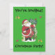 Diese Party-Einladung ist grün mit einem lustigen Weihnachtsmann mit einem Schild, das sagt Come for a Ho Lot of Fun. Der Weihnachtsmann ist umgeben von Bögen und Heiligen roten Beeren, die am Kiefernbaum stehend sind, mit roten Perlen und kleinen Tieren wie Vögeln, Eichhörnchen und Hasen. Passen Sie Ihre Daten auf der Vorder- und Rückseite mit den Vorlagen an.