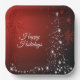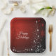 Weihnachts Party Weißstars Tree Rote Schneeflocken Papier Teller. Einzigartiges, schönes, stilvolles Design. Leicht personalisiert zu sein. Schriftart Stil, Größe und Farben können geändert werden. Matching-Elemente sind verfügbar.