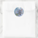 Weihnachts Party Winter White Snowman Blue Rustic Classic Round Sticker. Einzigartiges, schönes, stilvolles Design. Leicht personalisiert zu sein. Schriftart Stil, Größe und Farben können geändert werden. Matching-Elemente sind verfügbar.