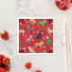Niedliche Pitbull-Hunde mit schwarzen, braunen, blauen und roten Fellfarben in festlichen Outfits, Weihnachtsmannmützen und Raute-Pullover mit verstreuten Weihnachtsschmuckmustern.