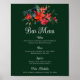 Dieses wunderschöne Bar-Menü druckt eine wunderschöne Aquarell von roten Poinsettia-Blume und Pine-Blätter für eine Weihnachtsfeier. Elegantes personalisiertes Getränkekopster mit festlichem Blumendesign auf Jägergrün.