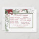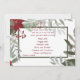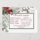 Eine schöne rote Poinsettia Rahmen um den Text, der Sie zu einem Potluck Weihnachtsmann einlädt. Der Vordertext ist in einem grünen Rechteck mit rotem Text gerahmt. Die Rückseite hat einen grünen Rahmen mit rotem Text für das klare Lesen.