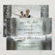 Eine winterliche Save the Date-Karte mit schneebedeckter Bergkulisse mit glitzernden Lichtern in den Bäumen und einem eigenen Foto auf der Rückseite. Der QR Code macht es Ihren Gästen leicht, Ihre Hochzeitswebsite zu finden.