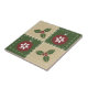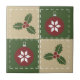 Vier Plätze in Grün und Bräune sind mit roten Ornamenten verziert, die mit weißen Schneeflocken und grünen Heiligen mit roten Beeren dekoriert sind. Weiße Nähte fügen eine dekorative Touch hinzu, die dem sich wiederholenden Muster das Aussehen eines Stepps verleiht und ein sehr gemütliches Gefühl für den Weihnachtsurlaub schafft.