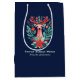 Weihnachts-Rentier Floral Blue Holiday Medium Gif Mittlere Geschenktüte