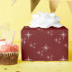 Retro Weihnachtsschneeflocken Papier mit rotem Hintergrund und weißem Schneeflocken Design. Ideal, um Ihren Urlaubsgeschenken eine festliche und minimalistische Touch hinzuzufügen.