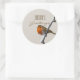 Frohe Festtage Red Robin Holiday Round Aufkleber. Teil der Weihnachtskollektion von Red Robin. Ein Single bemalt roten Rotkehlchen saß auf einem schneebedeckten Ast. Passen Sie mit Ihrem saisonalen Gruß an. Sein Name ist Bob und wünscht Ihnen eine sehr angenehme Urlaubssaison. Karo aus der Sammlung!