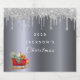 Ein Imitat silbermetallices Aussehen mit Imitaten silberne Glitzer Tropfen, ein bisschen Bling und Luxus für ein WeihnachtsParty. Der alte, Vintage Rot-Schlitten des Weihnachtsmanns, der mit Geschenken als Dekoration gefüllt ist. Mit dem Text: Weihnachten geschrieben mit einem modernen handgeschriebenen Stil Skript. Vorlage für Ihren Familiennamen und das Jahr, weiße Buchstaben.