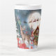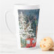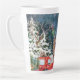Weihnachts Roter Truck Weihrustikaler Winterurlaub Latte Tasse bietet ein rustikales Winterdesign mit einem roten LKW, Schneemann, Rentier, Hütte, Weihnachtsbaum und Weihnachtsmann. Von Evco Holidays entworfen www.zazzle.com/store/evcoholidays