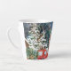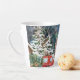 Weihnachts Roter Truck Weihrustikaler Winterurlaub Latte Tasse bietet ein rustikales Winterdesign mit einem roten LKW, Schneemann, Rentier, Hütte, Weihnachtsbaum und Weihnachtsmann. Von Evco Holidays entworfen www.zazzle.com/store/evcoholidays