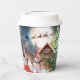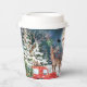 Weihnachts Roter Truck Weihrustikaler Winterurlaub Kaffeepapier Cups bietet ein rustikales Winterdesign mit einem roten LKW, Schneemann, Rentier, Hütte, Weihnachtsbaum und Weihnachtsmann. Von Evco Holidays entworfen www.zazzle.com/store/evcoholidays