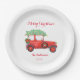 Frohe Weihnachts Red Truck Paper Teller mit grünem Weihnachtsbaum auf einem weißen Hintergrund. Mehr Produkte mit diesem Design sind in der folgenden Kollektion zu finden.