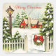 Weihnachts Rotes Haus Lattern Pine Trees Quadratischer Aufkleber