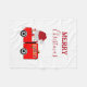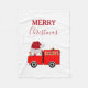 Eine niedliche Illustration eines roten Feuerwehrwagens, der eine Weihnachtsmannmütze trägt und in Weihnachtsbeleuchtung dekoriert ist. Der bezaubernde rote Motor eilte raus, um ein Feuer zu löschen. Perfektes Geschenk für jeden und jedes Alter. Ein absolutes Lieblingsfahrzeug für Notfälle.