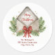 Fügen Sie diesen Vintagen Stil Classic Round Sticker der Weihnachtszeit-Rücksendeadresse zu Ihren Weihnachtsnachts-Mailings hinzu. Diese eleganten festlichen Stickers sind mit einem Vintagen Umschlag, einem hellen roten Bogen und grünem Blumenspray auf weißem Hintergrund gestaltet. Der Text enthält: Ihr Familienname und Ihre Rücksendeadresse. Um diese Aufkleber zu personalisieren, fügen Sie einfach Ihren Text in unsere einfache Vorlage ein und ersetzen das Muster.