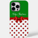 Weihnachts-Smartphone-Gehäuse in einem saisonalen Design mit schönen roten und weißen Polka-Punkten, grünem Hintergrund und hübsch digital bedrucktem roten Bogen auf dem Cover, um Ihrem Handy den Weihnachtsgeist zu geben.