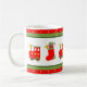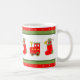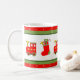 Kreative Weihnachtsferien-Tasse mit Spielzeugzug und Weihnachts-Strumpf. So personalisieren Sie den Namen.