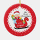 Das First Christmas Ornament des Babys ist mit einem bezaubernden Helfer in einem Schlittenhütten-Set auf einem rot-weißen Polka gepunkteten Hintergrund ausgestattet. Einfach mit Ihren Daten und Daten personalisieren