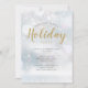 Eine moderne Party Einladung mit abfallenden Schneeflocken auf schneebedecktem Hintergrund mit einem Weihnachtsgrüßen-Set in einem eleganten Goldskripttext. Personalisieren Sie Ihre Feierlichkeiten mit Ihren Weihnachtsfeiern. Entwickelt von Thisisnotme©