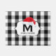 Preppy, trendig Buffalo kariert, schwarz-weiß personalisiert Weihnachten Begrüßung Doormat - Klassisches Lumberjack kariertes Muster in Schwarz-Weiß-Karos mit personalisiertem Familienname und schwarz Monogramm Erstaufnahme in der Mitte. Niedliche Weihnachtsmannmütze wird auf dem Anfangsbuchstaben geknackt. Niedlicher Empfang für die Gäste vor einer gemütlichen Blockhütte während der Weihnachtszeit oder in einer prächtigen Dekoration für die Ferienzeit. Country chic, mit Monogramm Ferienhaus-wärmend Geschenk für die Familie oder einzigartiges Weihnachtsgeschenk für die Neuvermählten Polterabend.