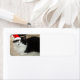 schöne, langhaarige Schwarz-Weiß-Katze mit Weihnachtsmannmütze