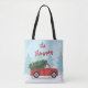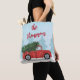 Dieses Design zeichnet sich durch eine Weihnachtsschrift aus, mit einer einfachen Schrift, eine minimale, maßgeschneiderte, personalisierte, mit einem roten LKW, niedlich, Weihnachtsbaum, eine rot-grüne Kalligrafie